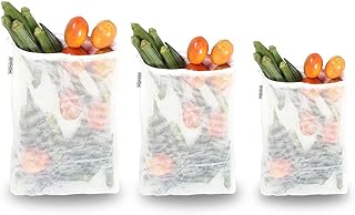 Wonder Cub mesh Reusable Fridge Storage Bag for Fruits & Vegetables-Set of 6 (Double Layered Mesh)- White