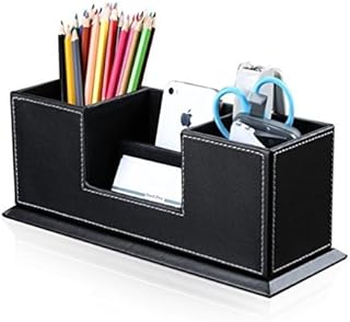 【SAMDVM】デスクオーガナイザー PUレザー ペン立て リモコンラック 小物入れ 卓上 リモコン ラック レザー 文具 収納 多機能収納 ケース ペン立て 引き出し リモコンラック おしゃれ(ブラック)