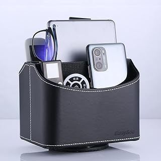 EasyAcc リモコンラック 多機能卓上収納ボックス 360度回転リモコンケース リモコンスタンド おしゃれ デスクオーガナイ 卓上小物収納 化粧品収納 ペン立て 5格仕切り PU オフィス/リビングルーム/ベッドサイド 黒