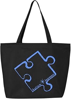 shop4everブルーパズルピースHeavy Canvas Tote with Zipper Autism Awareness再利用可能なショッピングバッグ12 oz Zip 25 oz ブラック S4E_1215_BluePuzzleP_TB_Q611_Black_1