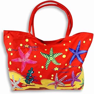 Waterproof Jumbo Red Canvas Beach Tote Bag Sea Starfish Design Zipper Closure 24 X 38cm X 15cm