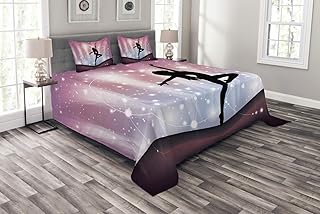 Ambesonne コンテンポラリーベッドスプレッド バレリーナのシルエット 抽象的な背景 マジックダンス ファインアート 装飾キルト 3点セット 枕カバー2枚付き クイーンサイズ パープル ブラック