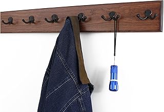 BirdRock Home Dual Hook Coat Rack 4 Dual Hooks Wall Mounted Hat Key Rack Rail Oil Rubbed Bronze Hooks Dark Brown Pine Bathroom Rail