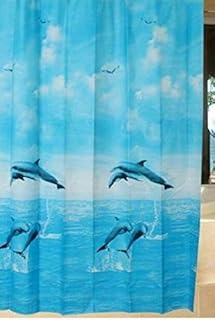 まごころすとあ シャワーカーテン ユニットバス バスルーム 防水防カビ加工 カーテンリング付属 海底 イルカ (イルカ)