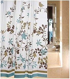 シャワーカーテン ユニットバス バスルーム PEVA 防水防カビ加工 カーテンリング付属 180×180cm A021013AA フラワーブラウン