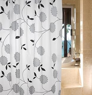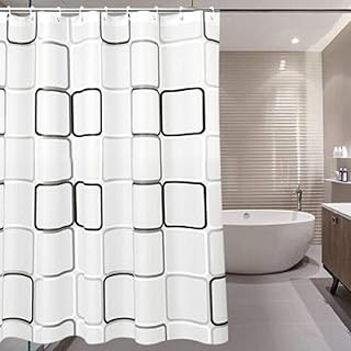 YFeng 加重120 x 180 cm シャワーカーテン 防水防カビ加工 カーテンリング付属 ハウス ブラックシェブロン