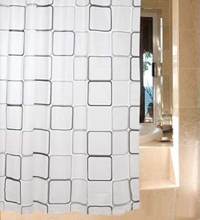 まごころすとあ シャワーカーテン 防水防カビ加工 カーテンリング付属 (スクエア柄, 120*180)