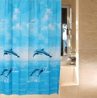 シャワーカーテン 防水防カビ加工 カーテンリング付属 180×180cm イルカ A021001BA