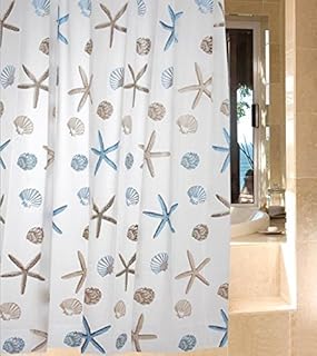 シャワーカーテン 防水防カビ加工 カーテンリング付属 貝とヒトデ A021009AA