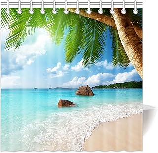 YFeng 120 x 180 cm 加重 シャワーカーテン 防水防カビ加工 カーテンリング付属 ハウスビーチ 海洋 ツリー