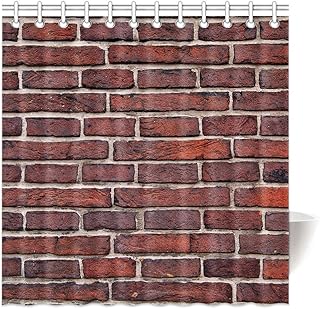 YFeng 90 x 180 cm 加重 シャワーカーテン 防水防カビ加工 カーテンリング付属 ハウス赤レンガの壁