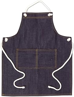 子供用 カラー デニム エプロン 紺 赤 生成り 緑 ピンク ストライプ 無地 130-150 (紺)