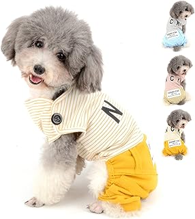 Ranphy ペット服 犬服 犬 つなぎ ロンパース パジャマ 柔らかい 綿製 秋冬 防寒 ドッグウエア ストライプ 柄 子犬 小型犬 猫 洋服 おしゃれ ストライプ 犬ジャンプスーツ ストライプ 部屋着 寝間着 抜け毛対策 春夏秋 散步 お出かけ