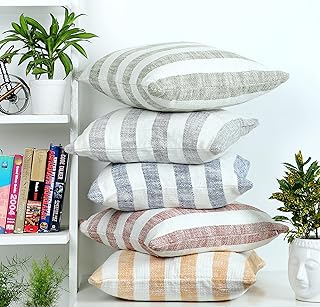 UNITY HOME クッションカバー 2枚セット コットン織 ストライプ 装飾 正方形 ストライプ クッションカバー 18x18インチ グレー