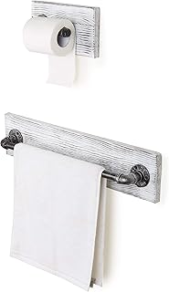 MyGift ホワイトウォッシュウッド&メタルパイプ 壁取り付けバスルームアクセサリーセット 2ピース