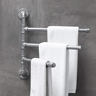 MyGift 3アーム 壁取り付け 工業パイプデザイン メタルパイプ スイベル バスタオル バーラック シルバー