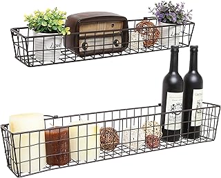 セットの2国素朴な壁マウントオープンワークメタルワイヤストレージバスケットシェルフ/ディスプレイラック – MyGift ブラウン TB-HOM0703BRN