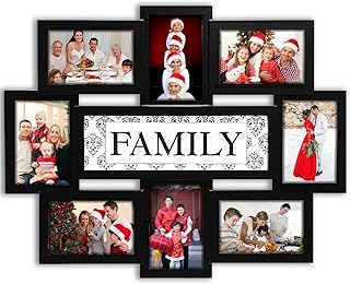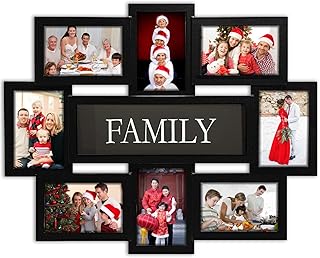Jerry & Maggie - フォトフレーム 22x17 家族と友達のテーマ ブラック写真フレーム 自撮りギャラリーコラージュ 壁掛け 6x4 写真用 - 写真ソケット8個 - 壁掛けデザイン