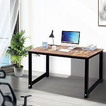 Jerry & Maggie – プロフェッショナルオフィスデスク 木製&スチールテーブル モダンプレーンラップデスク 長方形の脚 コンピューターデスク パーソナルワークスペース – 丈夫なデスクトップ長さ47インチ | 素朴な木目調