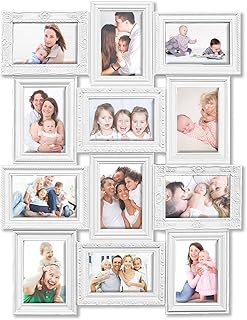 Jerry & Maggie フォトフレーム 20X27 ホワイト仕上げ ポリ塩化ビニル製 自撮りギャラリーコラージュ壁掛け 6x4写真用 12個のフォトソケット クラシックロイヤリティスタイル 壁掛けデザイン