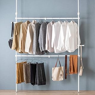 タンスのゲン ハンガーラック 突っ張り 幅122-169cm 高さ205-275cm 耐荷重80kg 2段 収納 ホワイト 56800030 01 【71807】
