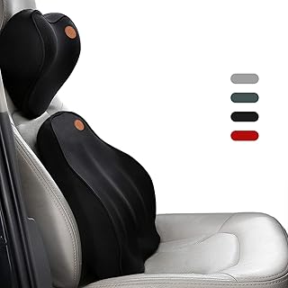 Ergocar 【アップグレード版】ネックピローと腰椎クッション 家庭、オフィス、車、旅行用の人間工学的なバックサポート用枕、首&下背部の痛みを和らげる (黑, 首の枕+腰あてクッション)