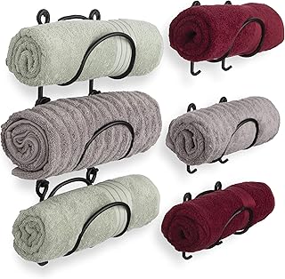 Wallniture Moduwine 壁マウント 素朴なホームデコ タオルラック 錬鉄メタル バスルームオーガナイザー カーブ仕上げ ブラック 5個セット