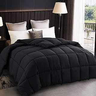 オールシーズン クイーンサイズ ソフトキルトダウン代替掛け布団 ホテルリバーシブル羽毛布団インサート コーナータブ付き ふわふわ 低刺激性 洗濯機洗い可 (ブラック クイーン(88インチ x 88インチ)