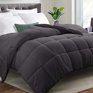 TEKAMON オールシーズン カルキング 掛け布団 冬 暖かい ソフト キルトダウン 代替 羽毛布団 インサート コーナータブ付き 豪華 ふわふわ リバーシブル コレクション ホテル用 ブラック 104 x 96インチ