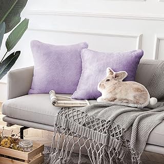 HIARUO フェイクファースロー枕カバー 装飾ソフト枕カバー クッションカバー ソファ/ベッド/椅子用 2枚セット (18インチ x 18インチ パープル)