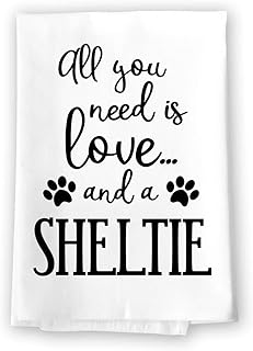 Honey Dew Gifts 面白いタオル All You Need is Love and a Sheltie キッチンタオル ディッシュタオル キッチン装飾 多目的ペットと犬愛好家キッチンタオル 27インチ x 27インチ コットン小麦粉サックタオル