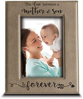 Bella Busta- the love between a Mother and Son is forever- 息子から母の日のギフト - クリスマスギフト - 刻印レザー写真フレーム (5インチ x 7インチ 垂直(母と息子))
