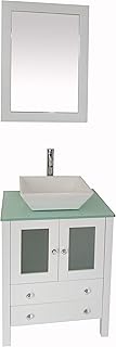 24インチ 自立式 木製 モダン バスルーム 化粧台 セラミックシンク 容器セット バスルームミラー付き (24インチ ホワイト)