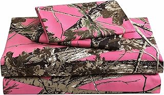 Chezmoi Collection セーレム 森林シーツセット 4ピース 自然 迷彩 木の葉 プリント ソフトマイクロファイバーシーツ - フル ピンク