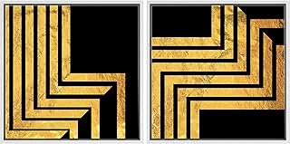SIGNFORD フレーム入り ウォールアート プリントセット パープルとグリーンのイリュージョン 正方形 抽象形 デジタルアート モダンアート シック カラフル ウルトラ リビングルーム 寝室 オフィス用 - 24インチ x 24インチ x 2インチ ホワイト