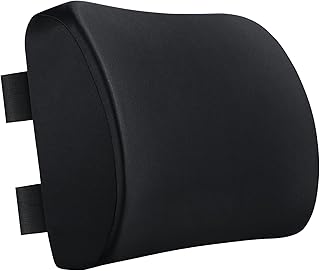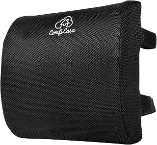 ComfiCasa 低反発素材 腰椎サポート枕 椅子用枕 - 腰椎枕 延長ストラップ付き 快適な座り心地と痛みを緩和 - バッククッション オフィスチェア カーシート コンピュータチェア用 (ブラック)