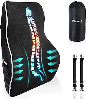 Tsubomi 低反発素材 腰椎サポート枕 オフィスチェア用 パソコンチェア用バックサポート カーシート 調節可能なデュアルストラップ付 再利用可能パッケージ 5Dメッシュ 交換可能なカシミアカバー(ブラック)