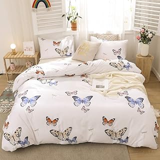 Merryword ホワイトブルー寝具 ブルーバタフライ 掛け布団カバーセット ブルー レッド 蝶 トンボ プリントデザイン ホワイト ボーイズ ガールズ 寝具セット ツイン 掛け布団カバー1枚 枕カバー1枚 (ツイン、ブルーバタフライ)
