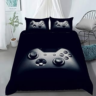 AILONEN ブラックゲームパッド 掛け布団カバーセット 優れたゲーム寝具セット ティーンエイジボーイズ ゲーマー布団セット 子供用キルトカバー ツインサイズ ビデオゲーム布団カバー 男の子のベッド用 マイクロファイバー生地 掛け布団なし