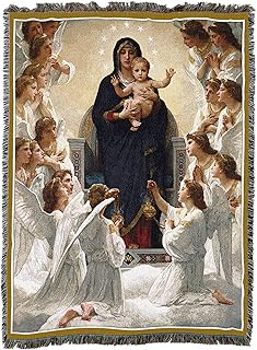 天使とイエスの聖母マリア - XL - コットン織ブランケットスロー - アメリカ製 (82x62)