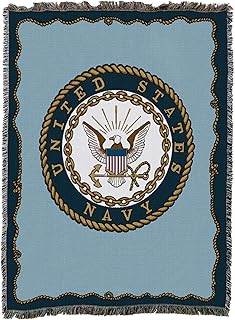 Pure Country Weavers US ネイビー - エンブレム XL ブランケット スロー コットン織 - アメリカ製 (82x62)
