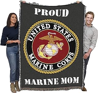 アメリカ海兵隊 - Proud Momエンブレム - コットン織ブランケットスロー - 米国製 (72x54)