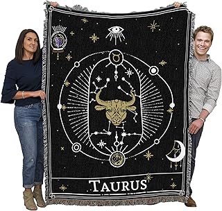 星座 - 牡牛座タロットカード - コットン織ブランケット スロー - アメリカ製 (72x54)