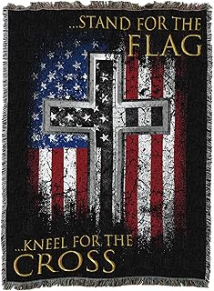 Stand for The Flag Kneel for The Cross - XL Sympathy ブランケットスロー コットン織 - アメリカ製 (82x62)