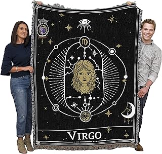 星座 - 乙女座タロットカード - コットン織ブランケット スロー - アメリカ製 (72x54)