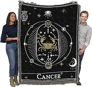 星座 - がんタロットカード - コットン織ブランケット スロー - アメリカ製 (72x54)