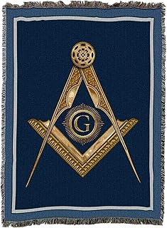 Pure Country Weavers フリーメーソンゴールドスクエアとコンパス - XLブランケットスロー コットン織 - アメリカ製 (82x62)