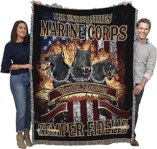 Pure Country Weavers 米国海兵隊 - エンブレム XL ブランケット スロー コットン織 - アメリカ製 (82x62)