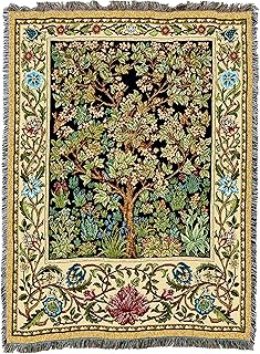 ツリーオブライフ - XL - ウィリアム・モリス - アートとクラフト - コットン織ブランケットスロー - アメリカ製 (82x62)