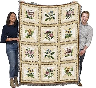 フレンチフローラル Susan Welsch コットン織ブランケット 米国製 (72x54)